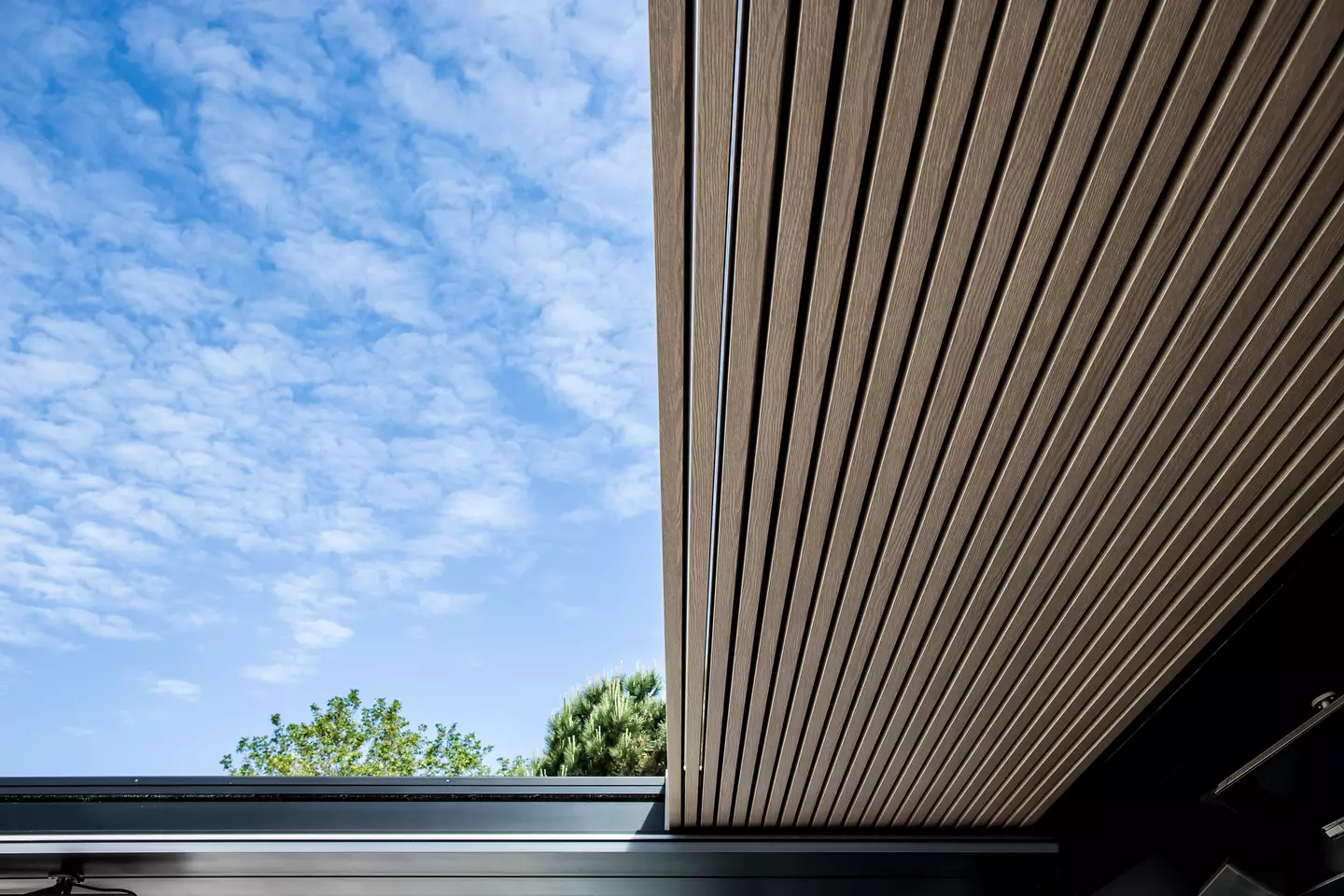 Openschuifbare lamellen als overkapping De Camargue Skye geeft je een open maar tegelijk geborgen gevoel. De aluminium lamellen in het dak van de overkapping kun je naar wens kantelen en zelfs volledig openschuiven dankzij de S-drive-technologie. Deze terrasoverkapping met verschuifbaar dak is dus ideaal om in de winter maximaal zonlicht binnen te laten en in de zomer de volle sterrenhemel te kunnen bewonderen. Wanneer het moet, houden de dubbelwandige lamellen regen, sneeuw en wind met gemak tegen. Voor de ideale zoninval kantel je de lamellen in de overkapping naar wens en op hete dagen kan de warme lucht zo gemakkelijk ontsnappen. Deze overkapping is niet alleen erg functioneel, ze heeft ook heel strakke looks. Alle bedradingen, verankeringen en waterafvoeren zijn onzichtbaar weggewerkt. De terrasoverkapping met verschuifbaar dak kan zowel vrijstaand als aan de gevel worden gemonteerd. De mogelijkheden tot personaliseren zijn legio. Kies bijvoorbeeld voor windvaste screens , Loggia of glazen schuifpanelen als zij-element. Of maak het aangenaam gezellig met led-verlichting en een muziek- of verwarmingsinstallatie .